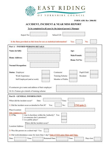 Accident Report Form Incident Report Form Incident Report Injury Report